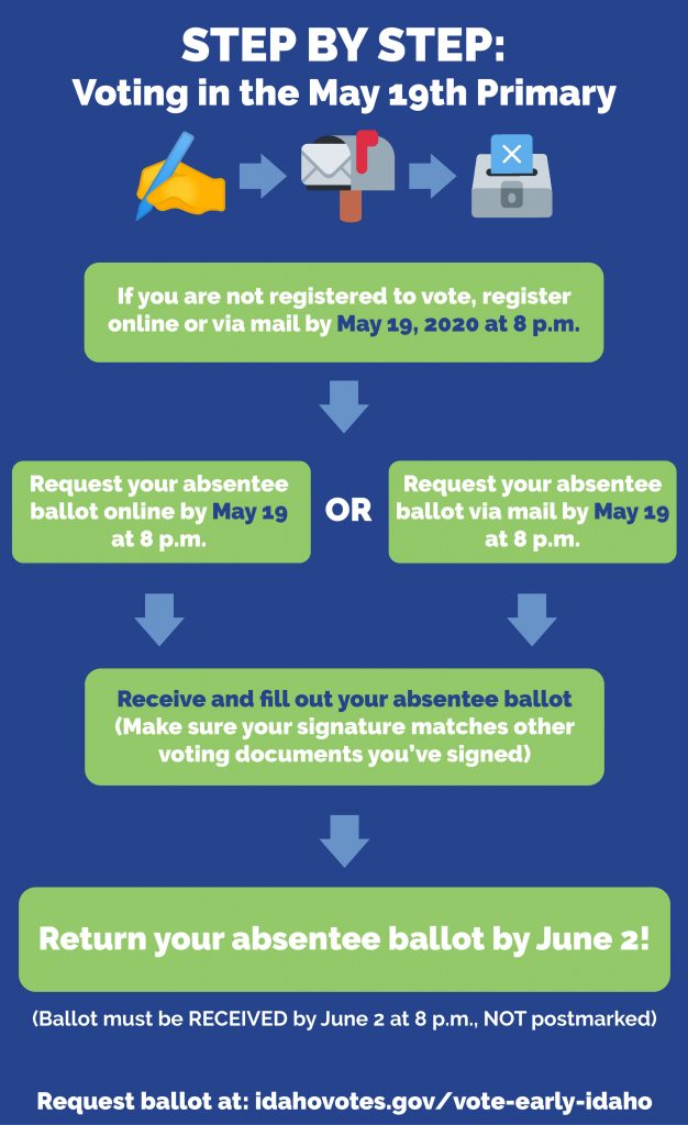 Guess what? Idaho has updated its website so that you can request an absentee ballot for the November election. Head over to IdahoVotes.gov and request your ballot. We don’t know what the next few months will bring, so now is a great time to sign up to receive your ballot by mail. Also: Save the USPS. Learn […]