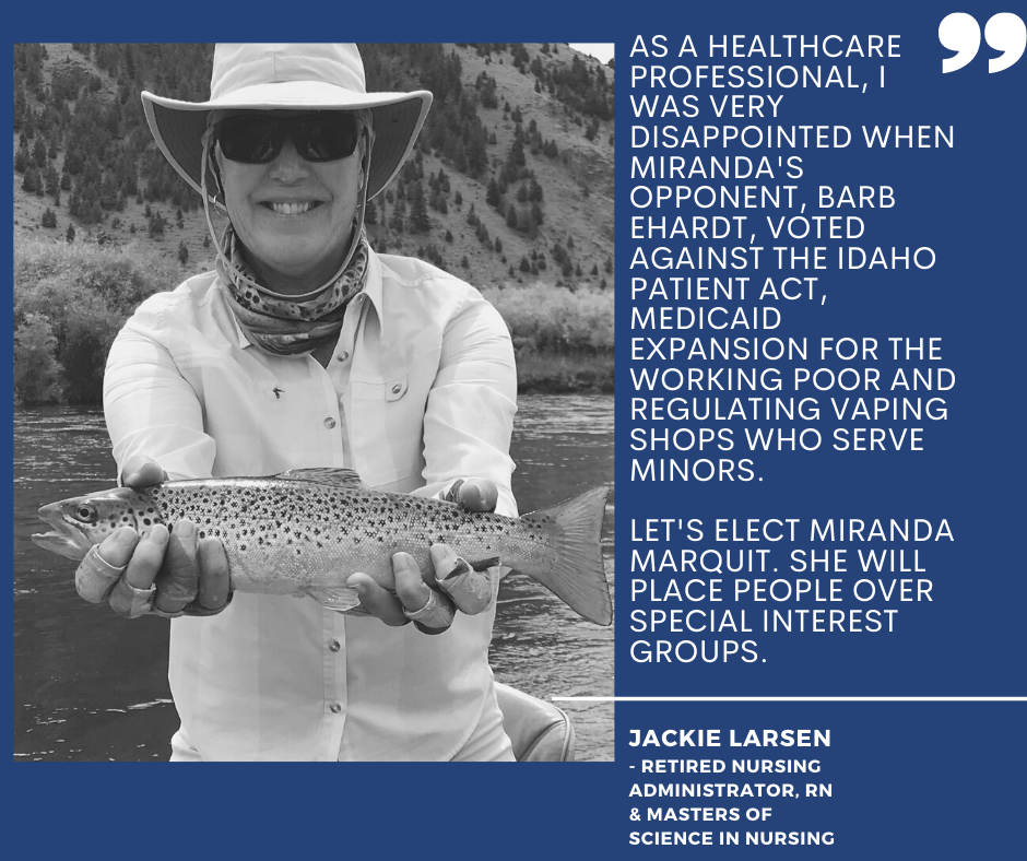 Jackie Larsen, a retired nursing administrator, knows more than most the importance of protecting people and adopting policies that promote our health. Thank you so much for your kind endorsement.