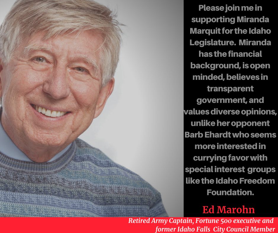 Ed Marohn, a former Idaho Falls City Council member, was one of the first people to suggest that I might run for office. I’m honored that such an amazing human and part of the community would endorse me.