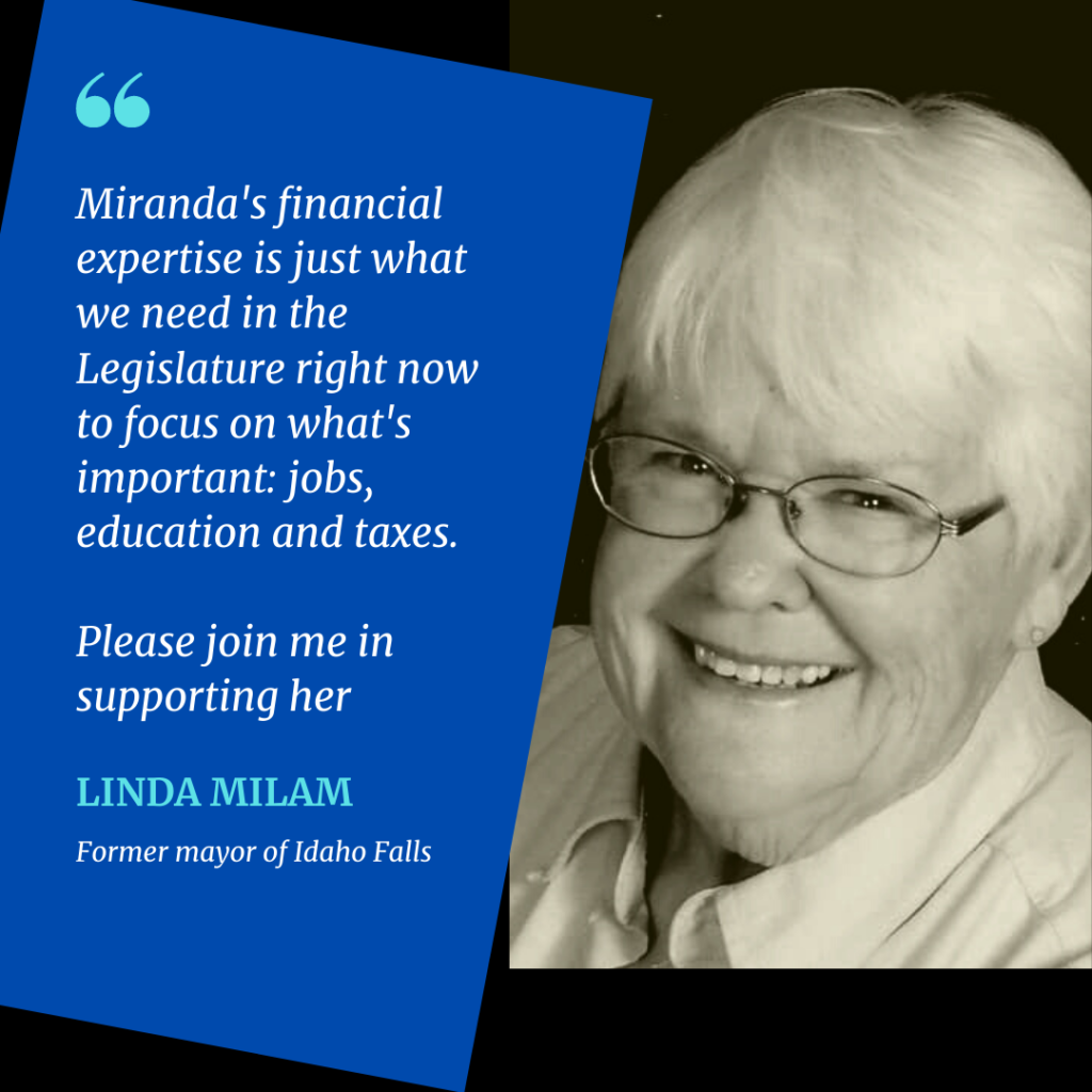 I remember admiring Linda Milam as I was growing up here in Idaho Falls. She’s the first mayor I remember. I’m so humbled that she would endorse me for state legislature.