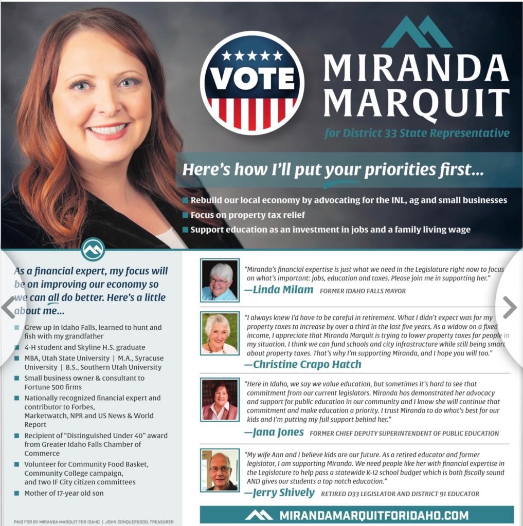 Miranda Marquit and Rep. Barbara Ehardt debated in September. Watch the debate and decide whose positions you better align with.